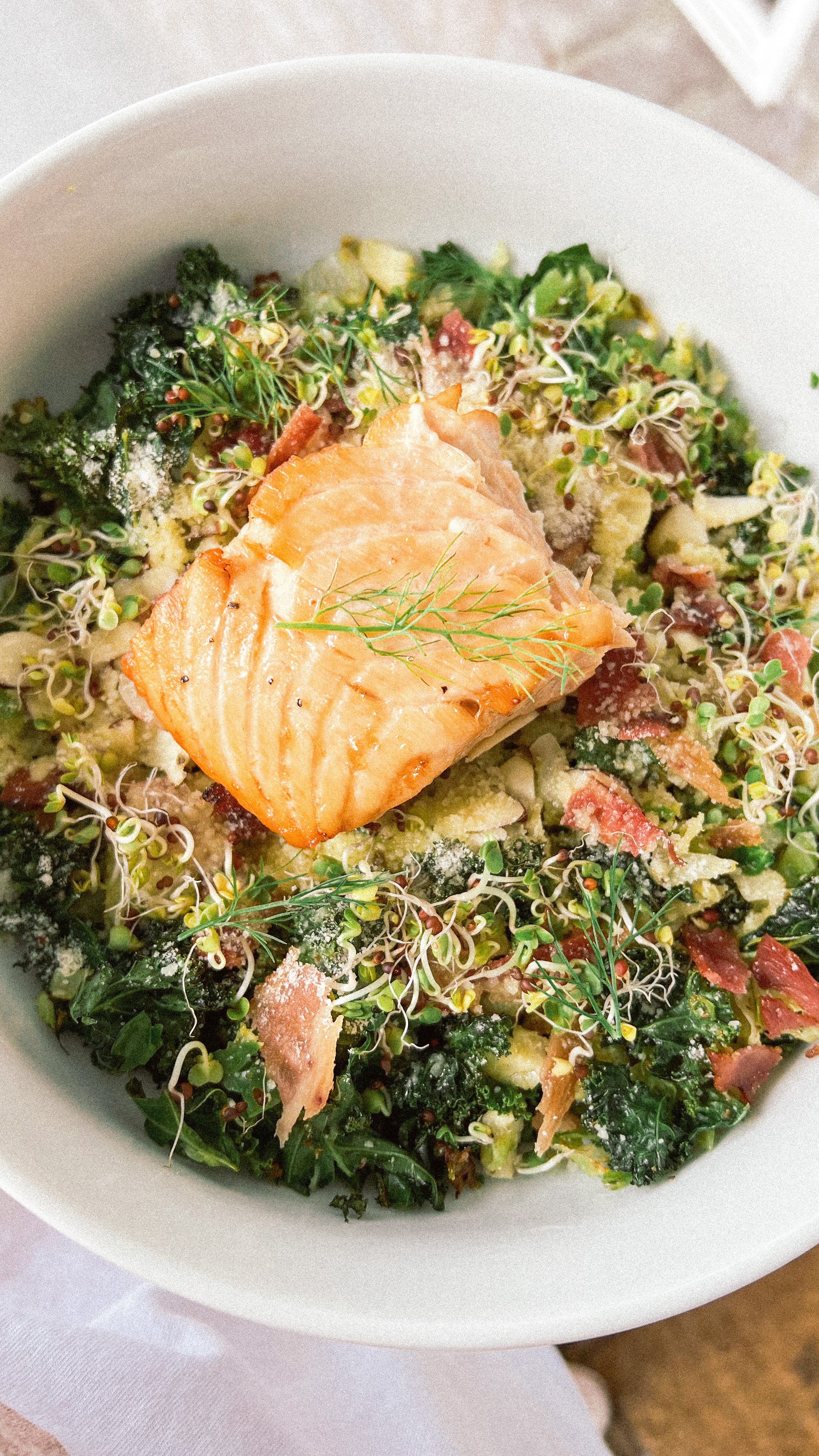 We enjoy this as a dinner served with air fryer salmon! (Just thaw if frozen, pat dry, spray with oil, sprinkle a little salt & pepper or preferred seasoning and roast for 13 min at 390 then check to make sure it’s fully cooked… depending on the thickness, 13 minutes might not be enough!)