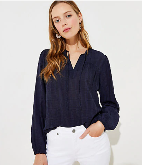 We’re 10 days out from the official first day of summer, friends!! I purged so much before moving and now that the seasons are changing / we’re getting closer to places opening back up, I realized I have plenty of t-shirts and camisole type blouses but not many casual-to-casually-dressy tops. Recently, I ordered a bunch of cute tops from LOFT and after chatting with my sister about her hunt for cute vacation clothes, I wanted to share with my friends online about some of my favorites, what I’m returning and others that caught my eye!